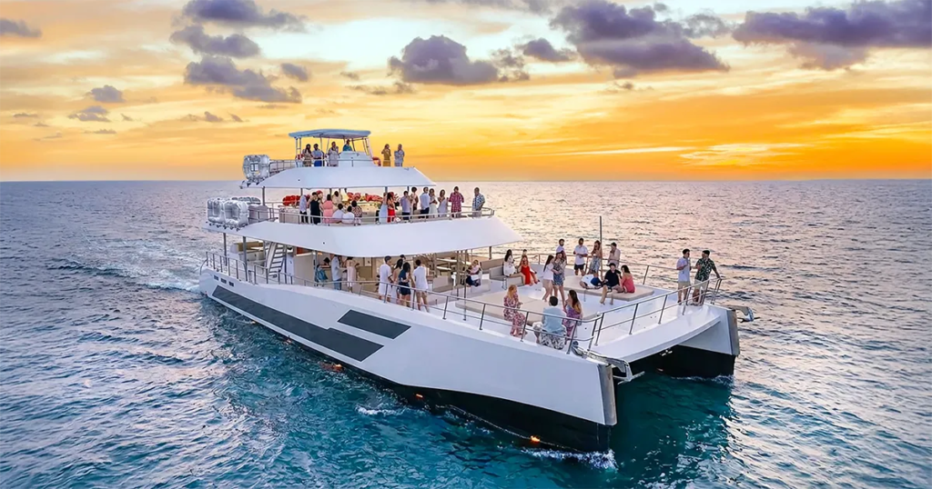 The Sunset Party Cruise combines the beauty of sunset views with a lively and social atmosphere. Guests can enjoy music, refreshments, and a vibrant setting as the sun sets over the ocean.